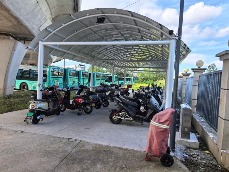 為解決職工的電動(dòng)自行車停車問題,公交公司在了解到職工的停車充電需求后,迅速開展調(diào)研,結(jié)合車場(chǎng)實(shí)際空間布局,安排公交服務(wù)公司制定了電動(dòng)自行車棚建設(shè)方案。經(jīng)過緊張施工,一座集 “停放 + 防護(hù)” 于一體的專屬車棚順利建成,用 “遮風(fēng)擋雨” 的實(shí)際行動(dòng),為一線駕駛員送上貼心保障。 走進(jìn)這座新落成的車棚,鋼結(jié)構(gòu)框架穩(wěn)固耐用,能有效抵御日曬、雨淋、風(fēng)吹;棚內(nèi)可停放200多個(gè)車位。此外,公司還安排專人定期對(duì)車棚進(jìn)行清潔維護(hù),確保環(huán)境整潔、設(shè)施完好。