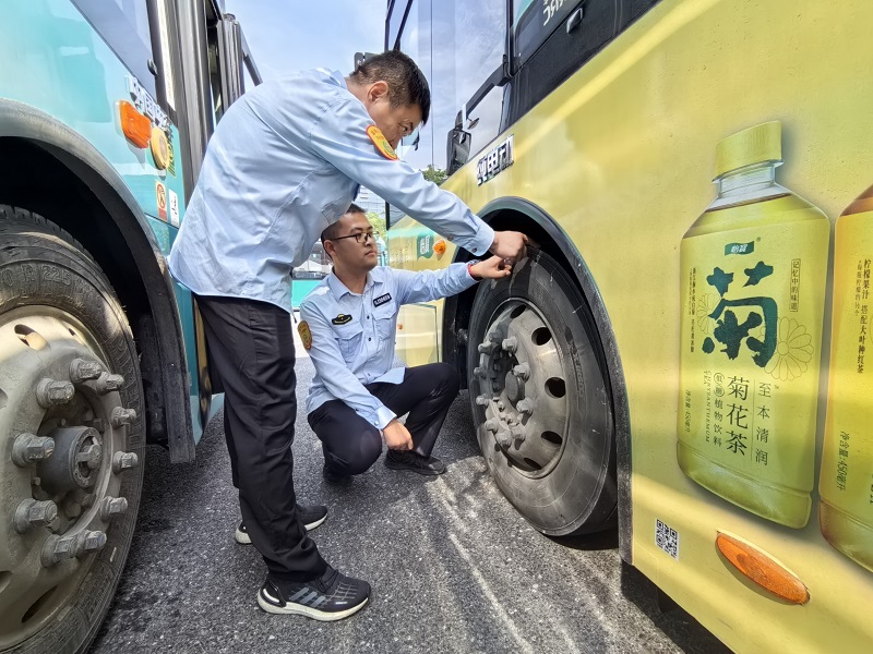 今年國(guó)慶、中秋雙節(jié)疊加,客流量比往常增加不少,父子倆提前抵達(dá)場(chǎng)站,對(duì)車(chē)輛的每個(gè)部件進(jìn)行“地毯式”排查,不放過(guò)任何安全隱患,只為確保乘客能擁有安全、舒適的出行體驗(yàn)。“越是節(jié)假日,我們?cè)揭蚱鹗值木駷槌丝头⻊?wù)。只有讓乘客安心出行,我們的堅(jiān)守才具有意義。”行車(chē)途中,成凱將父親的敬業(yè)精神融入每一次微笑服務(wù)、每一句溫馨提示、每一趟安全駕駛之中。他笑著說(shuō):“我和我爸是‘戰(zhàn)友’,只是負(fù)責(zé)的線路不同。”
