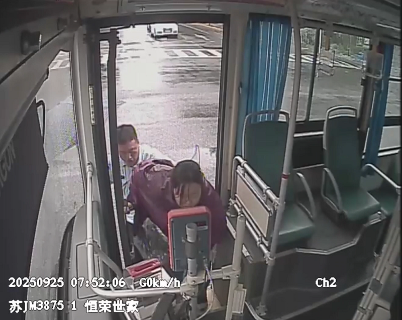 9月25日,受臺(tái)風(fēng)“樺加沙”影響,鹽城市區(qū)遭遇強(qiáng)降雨天氣。7時(shí)45分左右,1路公交車駕駛員黃國(guó)成駕駛車輛行至鹽瀆路華夏路口等紅綠燈時(shí),發(fā)現(xiàn)前方一名學(xué)生連人帶車摔倒在路中間,頭部出血,傷勢(shì)嚴(yán)重。他立刻將車輛安全停靠,迅速冒雨上前查看情況。