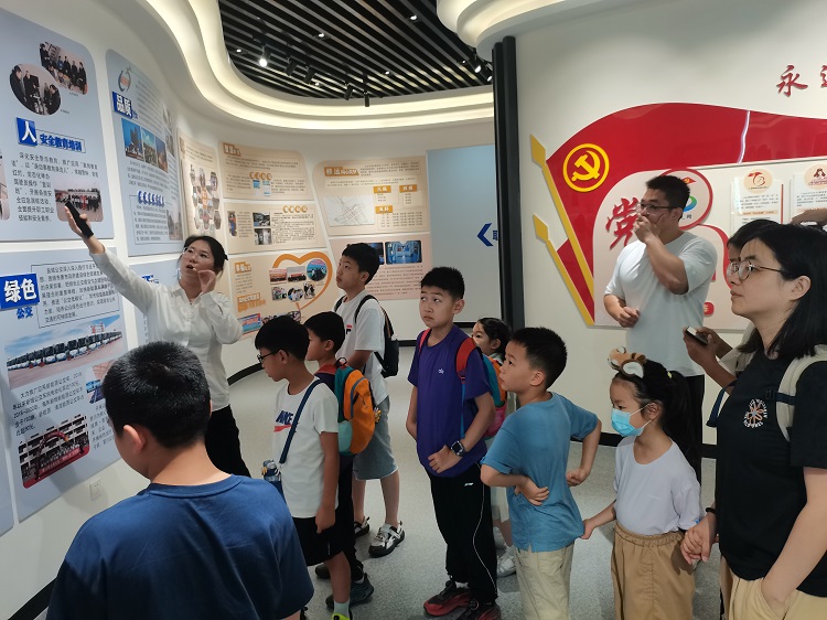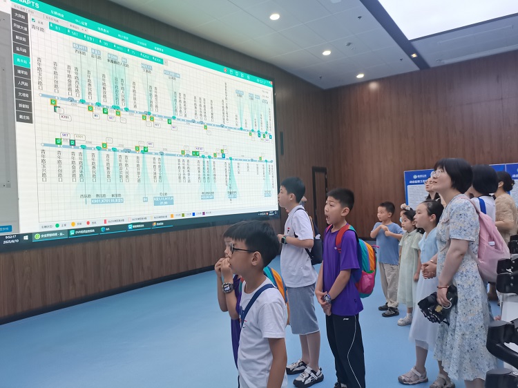 活動(dòng)首站,參與者們走進(jìn)鹽城市公共交通有限公司展覽館。在這里,一幕幕公交發(fā)展史徐徐展開(kāi)。大家通過(guò)宣傳視頻、圖文資料、實(shí)物展品與講解員的細(xì)致解說(shuō),了解了鹽城公共交通從無(wú)到有、從傳統(tǒng)燃油到綠色智能的演進(jìn)歷程,深刻體會(huì)到城市交通發(fā)展的艱辛與成就。隨后,大家來(lái)到城市公共交通的“智慧大腦”——鹽城公交調(diào)度指揮中心。巨大的電子屏幕實(shí)時(shí)顯示著全市公交車(chē)輛的運(yùn)行狀態(tài),在工作人員的講解中,孩子們驚嘆于科技如何精準(zhǔn)調(diào)度城市流動(dòng)的生命線(xiàn),感受到了科技帶來(lái)的便捷與秩序感。