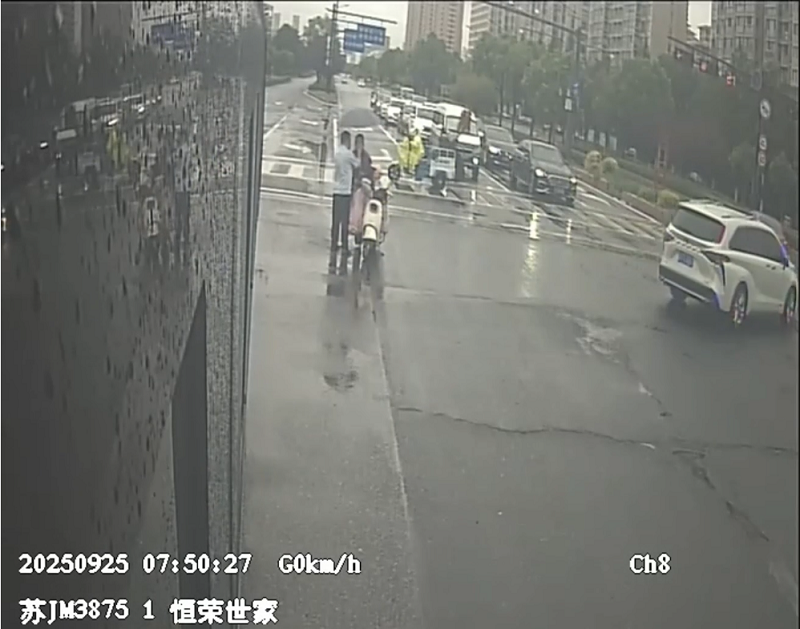 9月25日,受臺(tái)風(fēng)“樺加沙”影響,鹽城市區(qū)遭遇強(qiáng)降雨天氣。7時(shí)45分左右,1路公交車駕駛員黃國(guó)成駕駛車輛行至鹽瀆路華夏路口等紅綠燈時(shí),發(fā)現(xiàn)前方一名學(xué)生連人帶車摔倒在路中間,頭部出血,傷勢(shì)嚴(yán)重。他立刻將車輛安全停靠,迅速冒雨上前查看情況。
