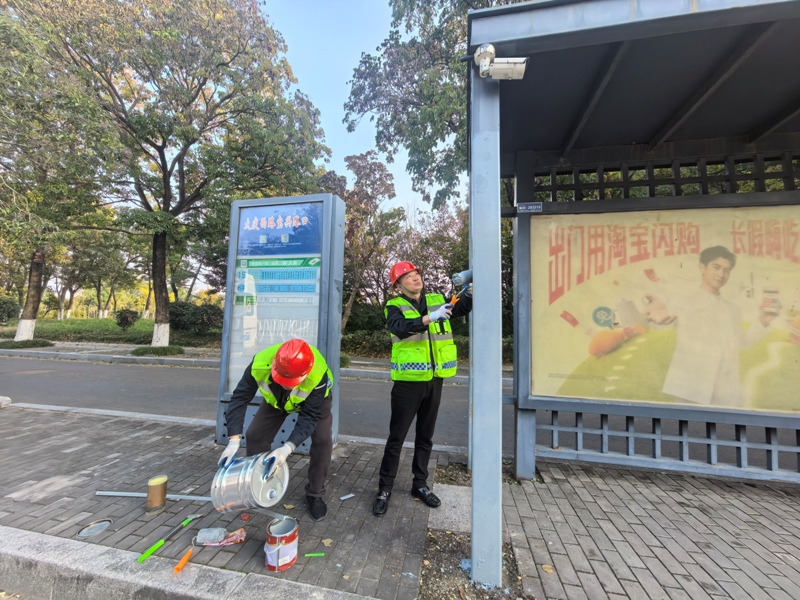 寒潮來(lái)襲后,市區(qū)部分公交候車亭出現(xiàn)玻璃結(jié)冰、站牌漆面剝落、燈箱照明失效等問(wèn)題,不僅影響市容美觀,也給市民候車帶來(lái)不便。為確保站臺(tái)設(shè)施在低溫環(huán)境下正常運(yùn)行,場(chǎng)站維修隊(duì)加大站臺(tái)巡查檢修力度,對(duì)故障站臺(tái)進(jìn)行刷漆與設(shè)施維護(hù)。